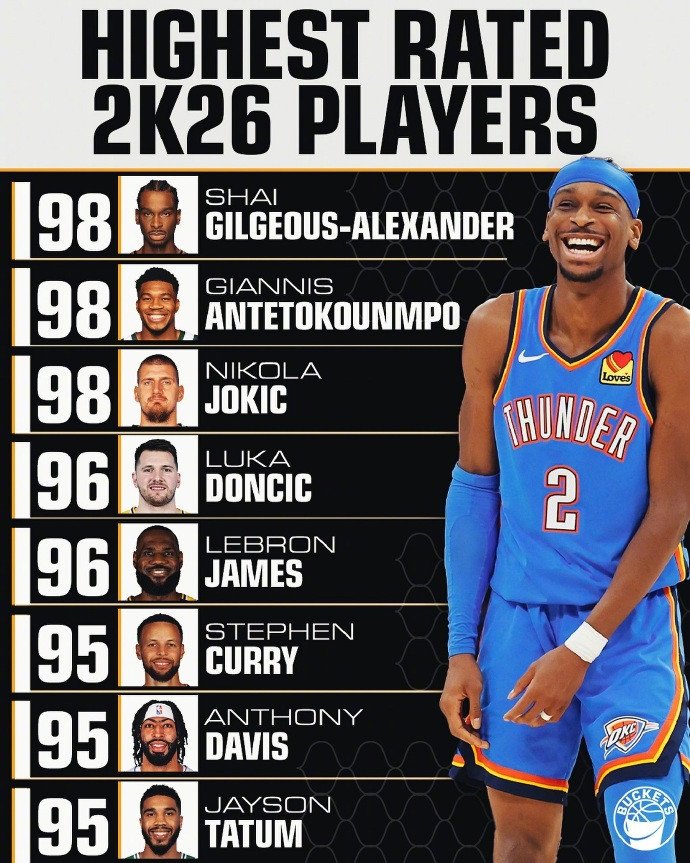 近几天,有很多球员的2K26最新能力值已经出炉在线炒股配资门户网,也引起了很多讨论。大家最关心的当然还是当今联盟的几位顶级球员的能力值都是多少。从公布出来的数据来看,亚历山大、约基奇、字母哥的能力值都是98,并列联盟第一。