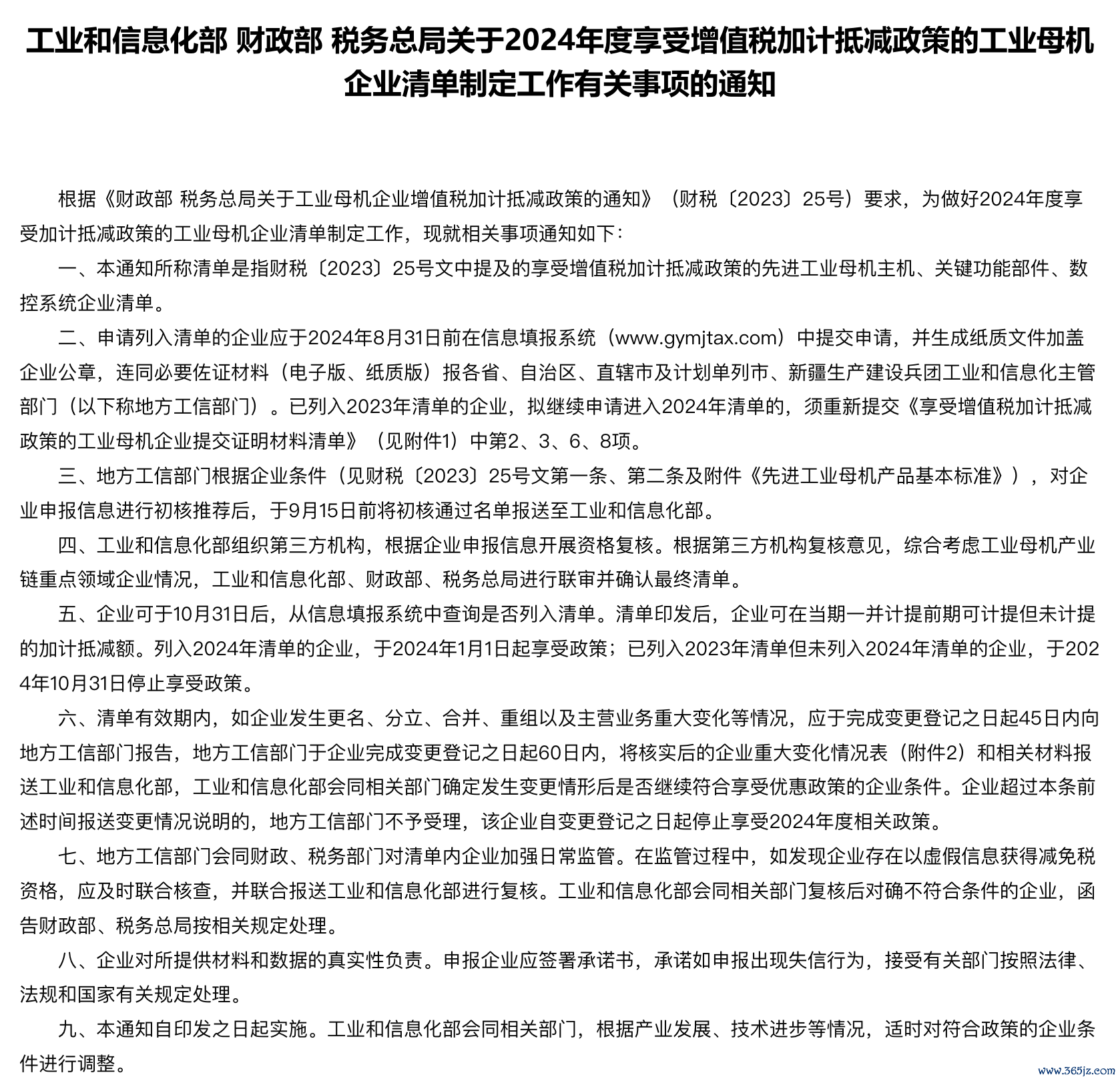 三部门发布关于2024年度享受增值税加计抵减政策的工业母机企业清单制定工作有关事项的通知配资平台开户炒股三部门发布关于2024年度享受增值税加计抵减政策的工业母机企业清单制定工作有关事项的通知