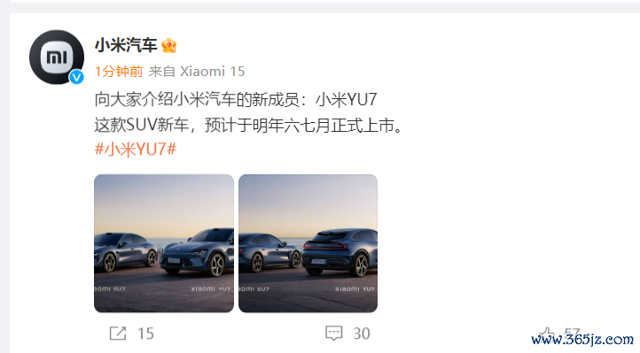 小米YU7新车预计于明年六七月正式上市小米YU7新车预计于明年六七月正式上市